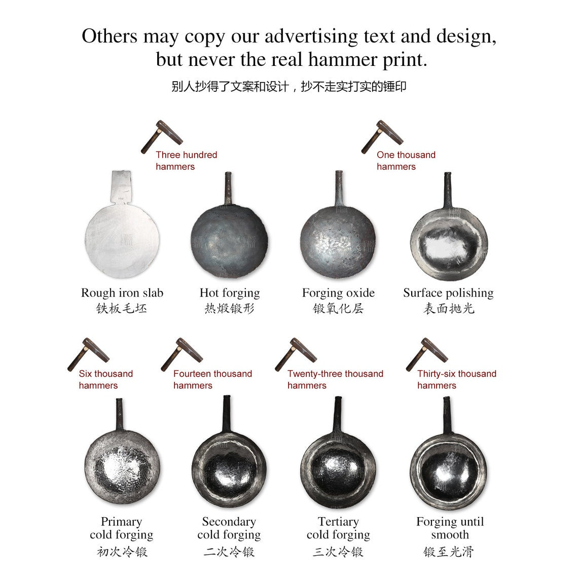 - It is handhammered over 6000 times. Fully hand hammered for 150 - 200 times for each square cm - for optimal heat retention and thorough, even heating.